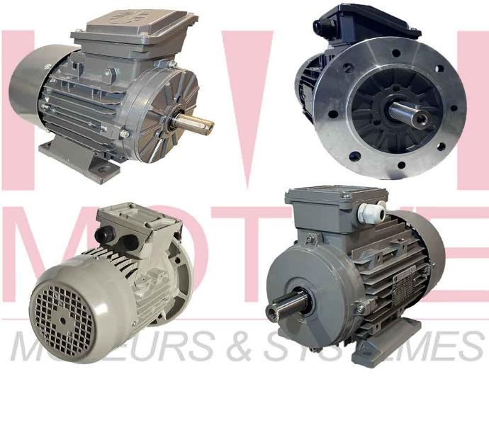 2,4,6,8 pôles du 0.09kw au 355kw. Disponibles en carcasse alu et fonte, rendement IE1 à IE4.